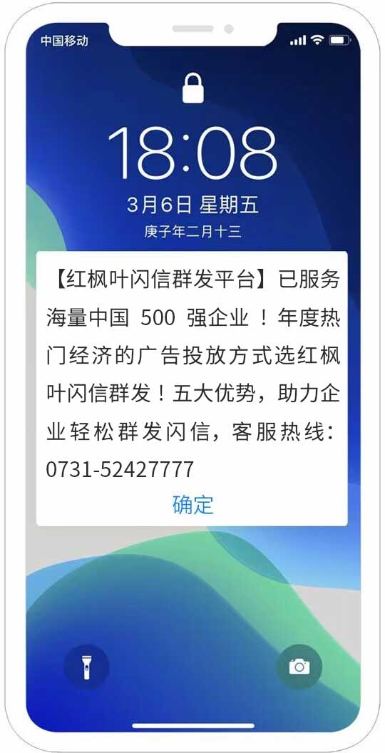 紅楓葉閃信群發(fā)平臺 是指用戶在收到閃信群發(fā)內容后,無需打開,短信內容直接顯示在用戶手機屏幕上,用戶如果沒有點擊閱讀,則閃信內容一直有顯示,用戶必須點擊才能關閉,真正實現(xiàn)了高閱讀率、高到達率!提升了用戶對產(chǎn)品的轉化率!