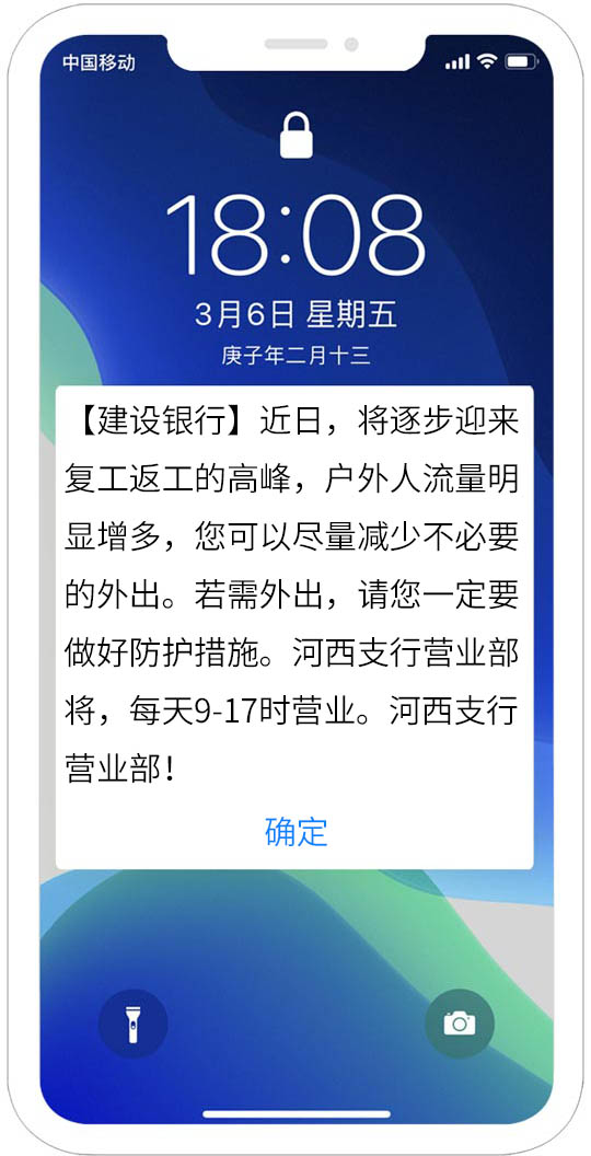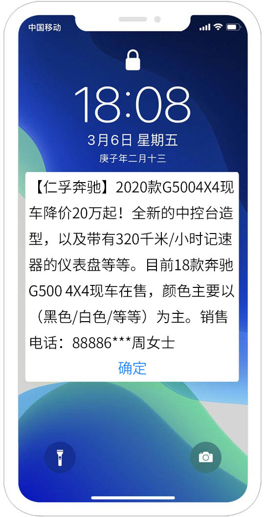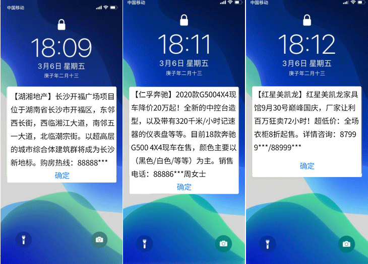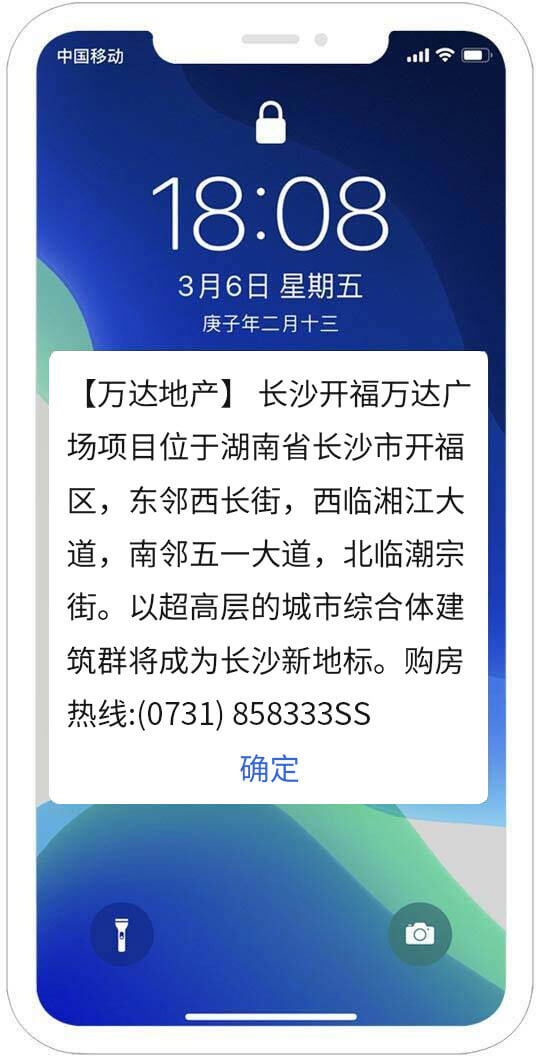 是指用戶在收到閃信群發(fā)內容后,無需打開,短信內容直接顯示在用戶手機屏幕上,用戶如果沒有點擊閱讀,則閃信內容一直有顯示,用戶必須點擊才能關閉,真正實現(xiàn)了高閱讀率、高到達率!提升了用戶對產(chǎn)品的轉化率!