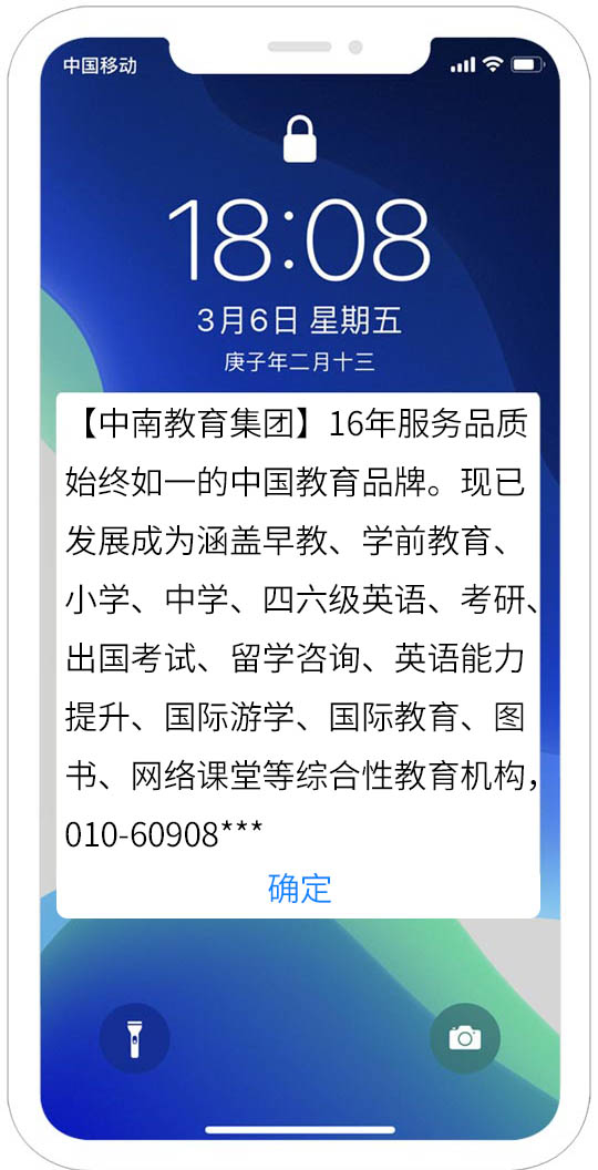 • 我們之所以選擇用紅楓葉閃信群發(fā),是因為它的特殊新型的傳輸方式,家長們在收到閃信群發(fā)內容后,無需打開,短信內容直接顯示在手機屏幕上,招生信息和優(yōu)惠活動能被閱讀,這樣的閱讀率極大提高了轉化率。為我們解決了招生難題。